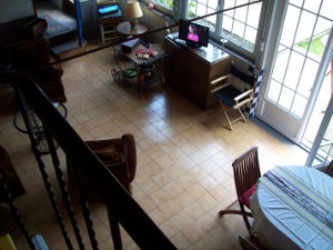 Atypique aussi par son agencement à deux niveaux : une façade en pierre, style très breton, et l'autre façade, en contrebas, lumineuse avec sa rangée de vitres donnant sur un parc.